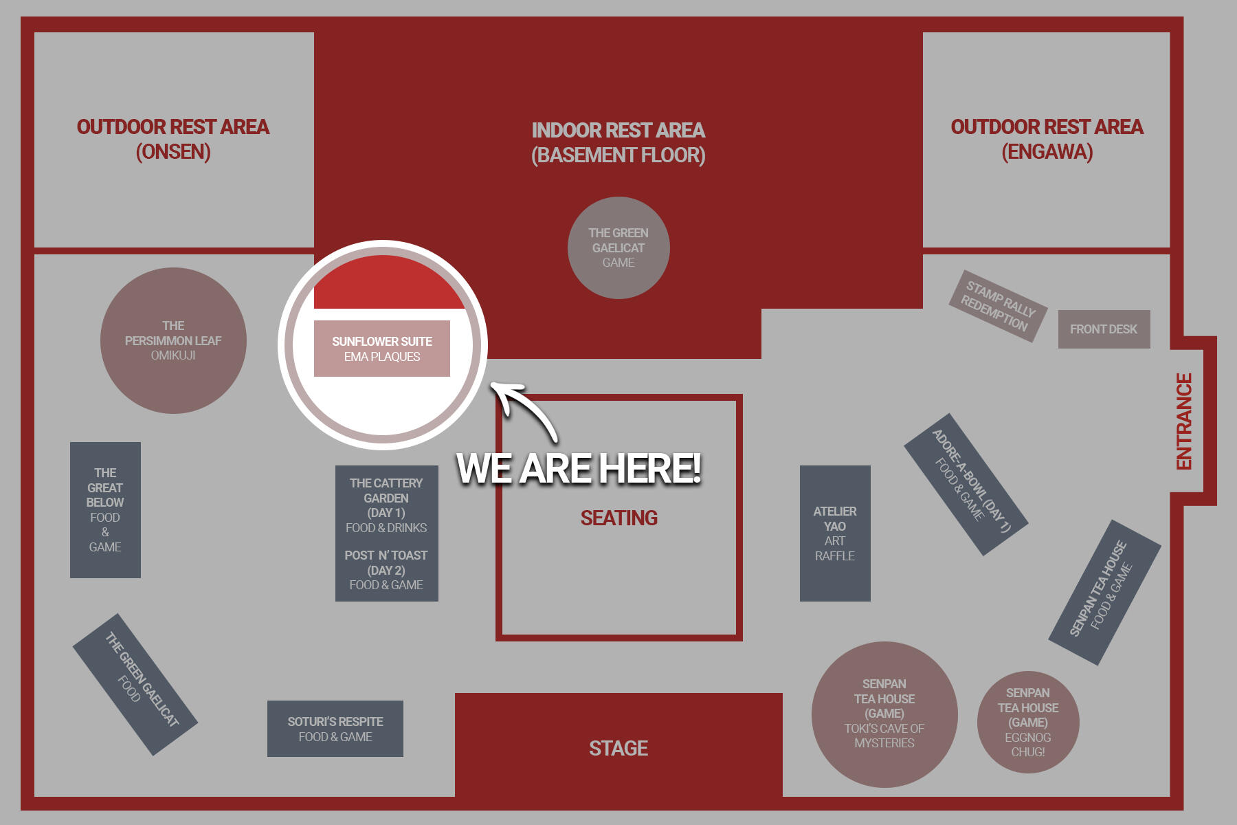 The Sunflower Suite is a place where one can make themselves at home whenever they want. Whether you're relaxing and unwinding, or practicing your RP, the space is always available for your use.For Toji Matsuri, Tara Ficcone, the owner of the Sunflower Suite and leader of the Fellowship of Yellowship will be assisting festival-goers with Ema Plaques!