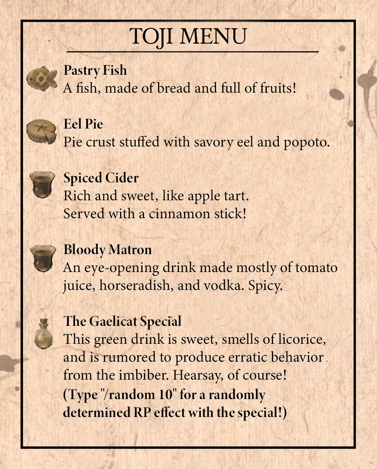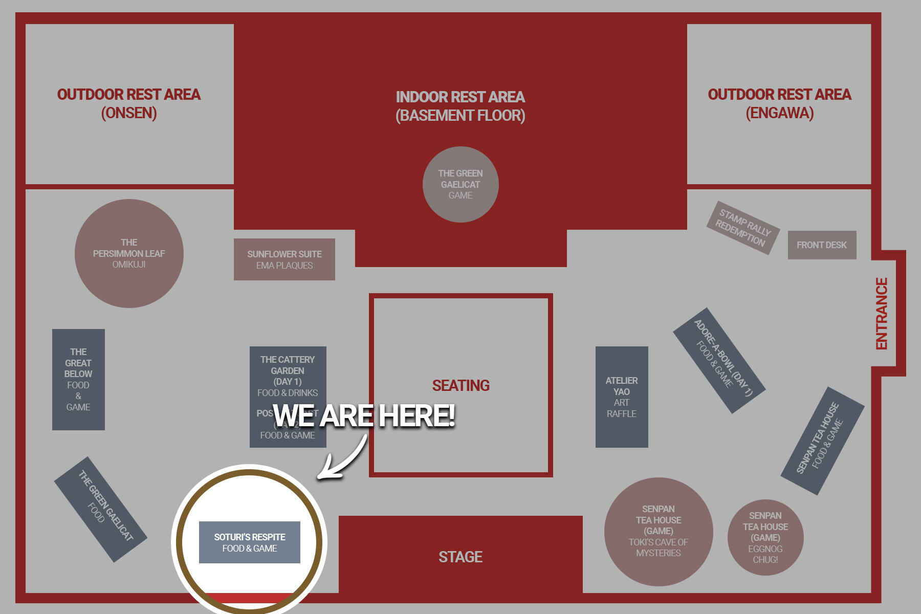 Soturi’s Respite offers a relaxing and warm café experience after a long day! For Toji Matsuri, we offer that same warm flavor, with a fun test of strength!